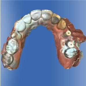 インプラントに特別な器具をつなげて、お口の中で光をつかって型どりをします。型どりしたデータが以下のようなデータです。