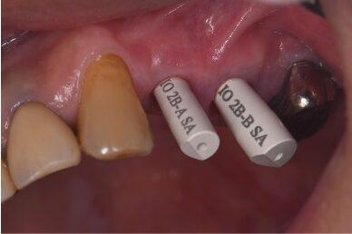 左上に歯がないところがあります。そこにインプラントの歯を作って行きます。(インプラントはすでに半年前に入っております。)