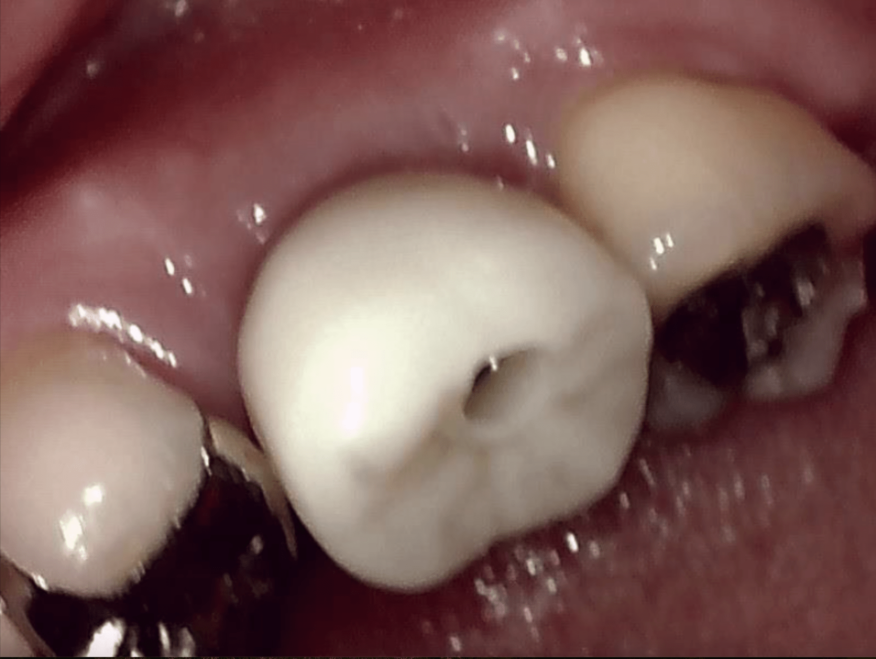 患者様はアクセスホールといいまして、歯の穴はどうするの?とお思いかもしれませんが、CRという白くて硬い樹脂で