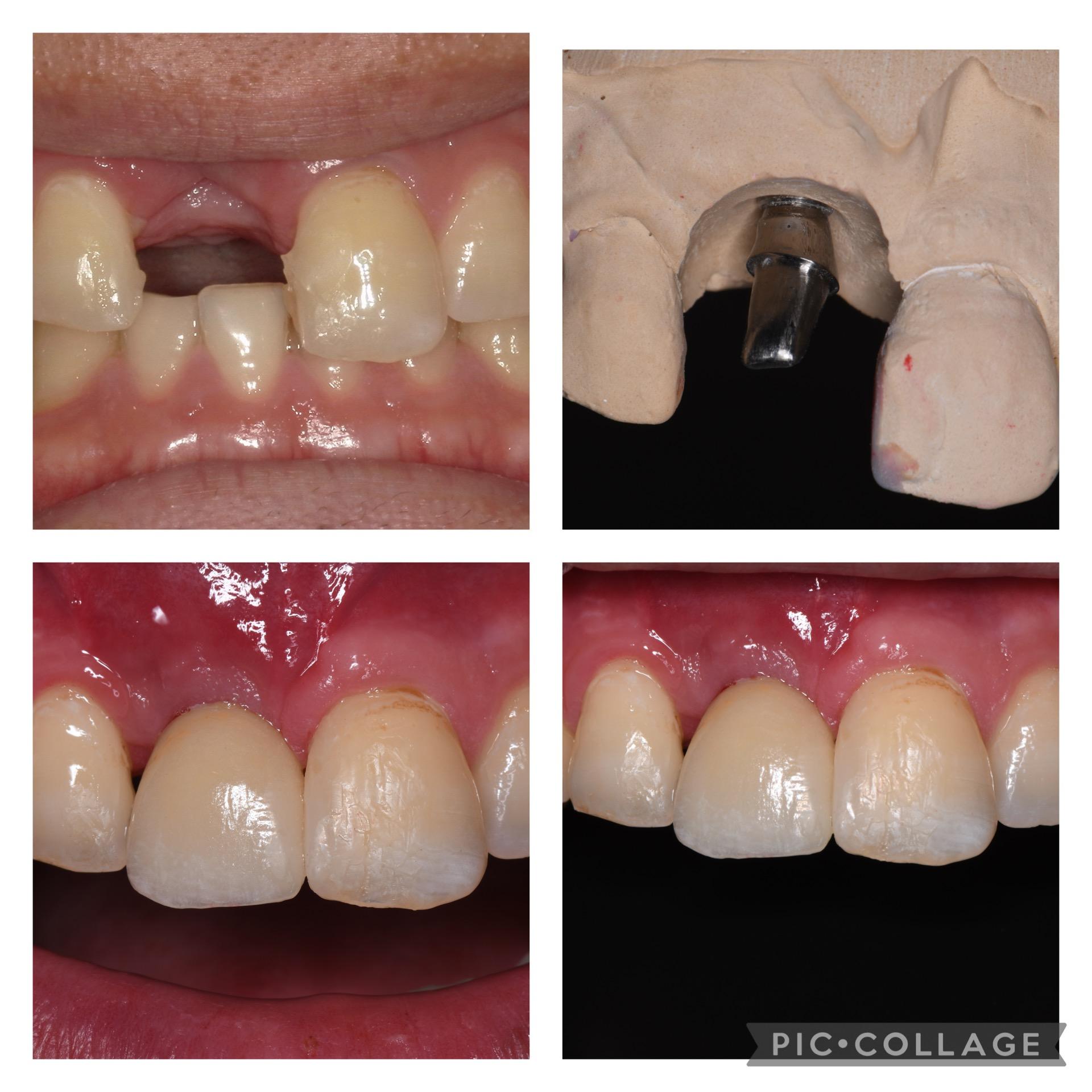 インプラント埋入後デジタル上でチタンの土台を作りセラミックの前歯を作りました。