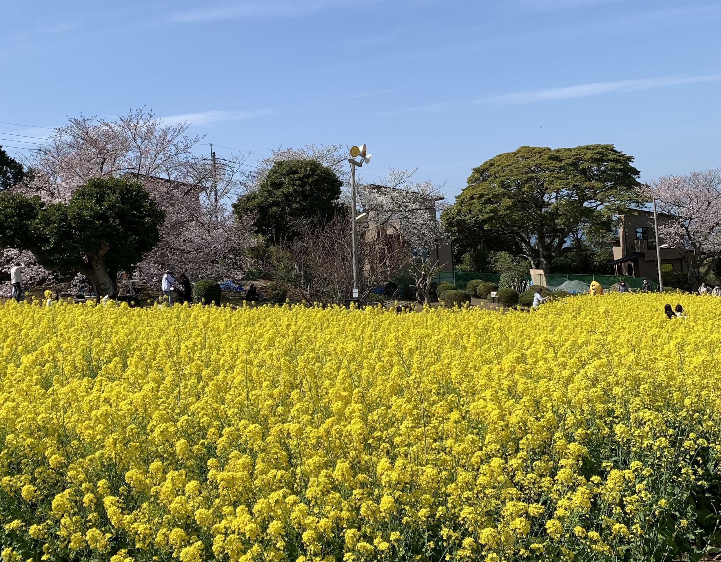 カレーメシと菜の花畑の色がちょうど同じで、間違い探しみたいな写真が撮れました!