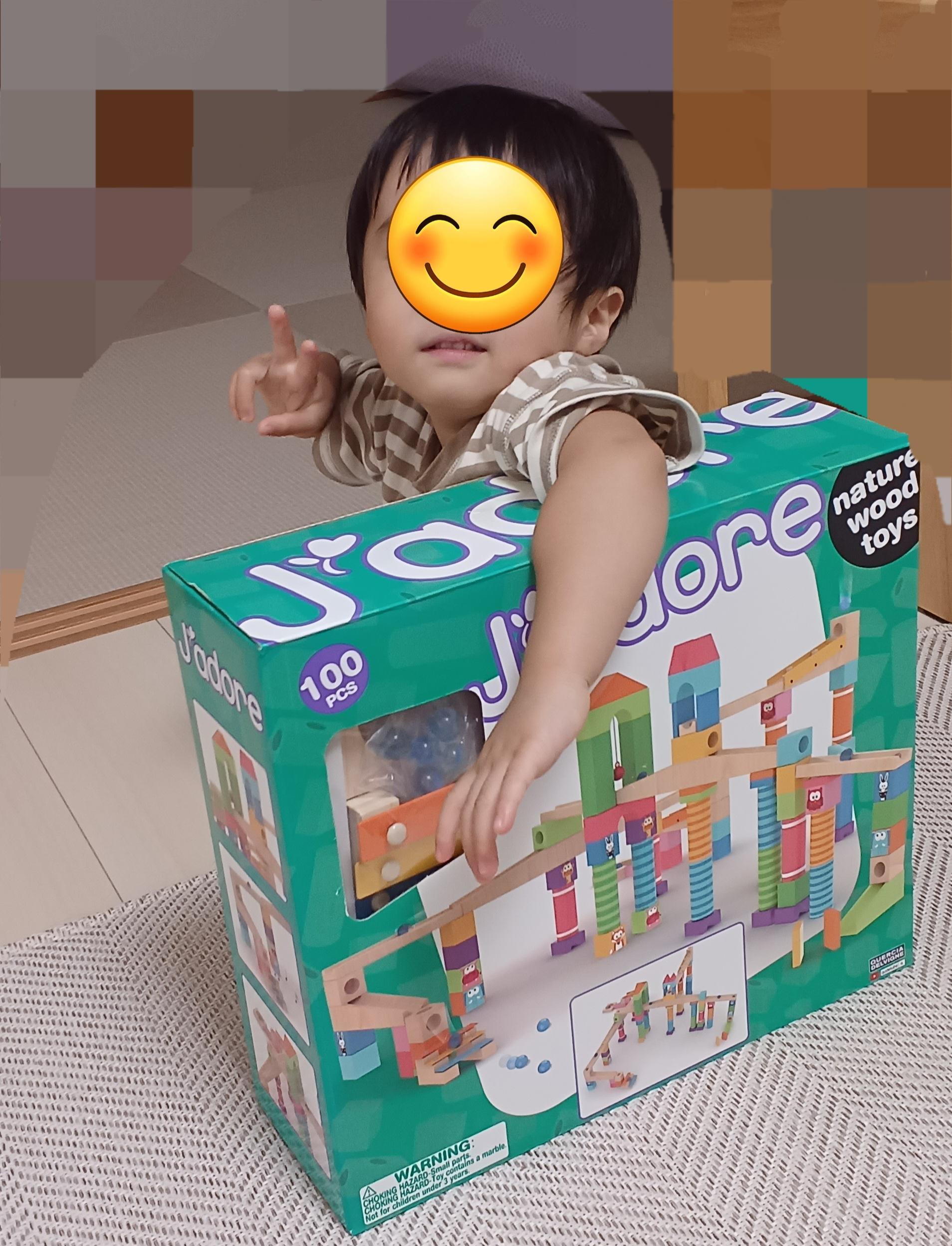 おもちゃ屋に連れていくと、ジャドレーという、積み木を積んでビー玉を転がしていくおもちゃに一目惚れをしていました。