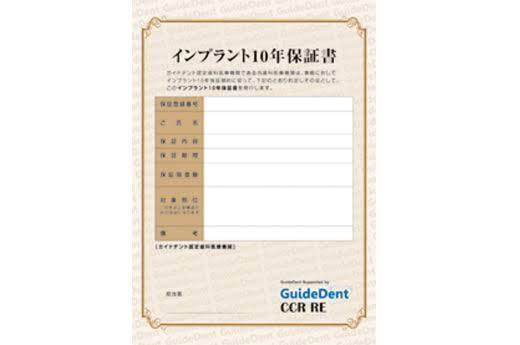 10年保証システムとは、「ガイドデント」というインプラント治療保証会社が行っている第三者によるインプラント保証システムです。