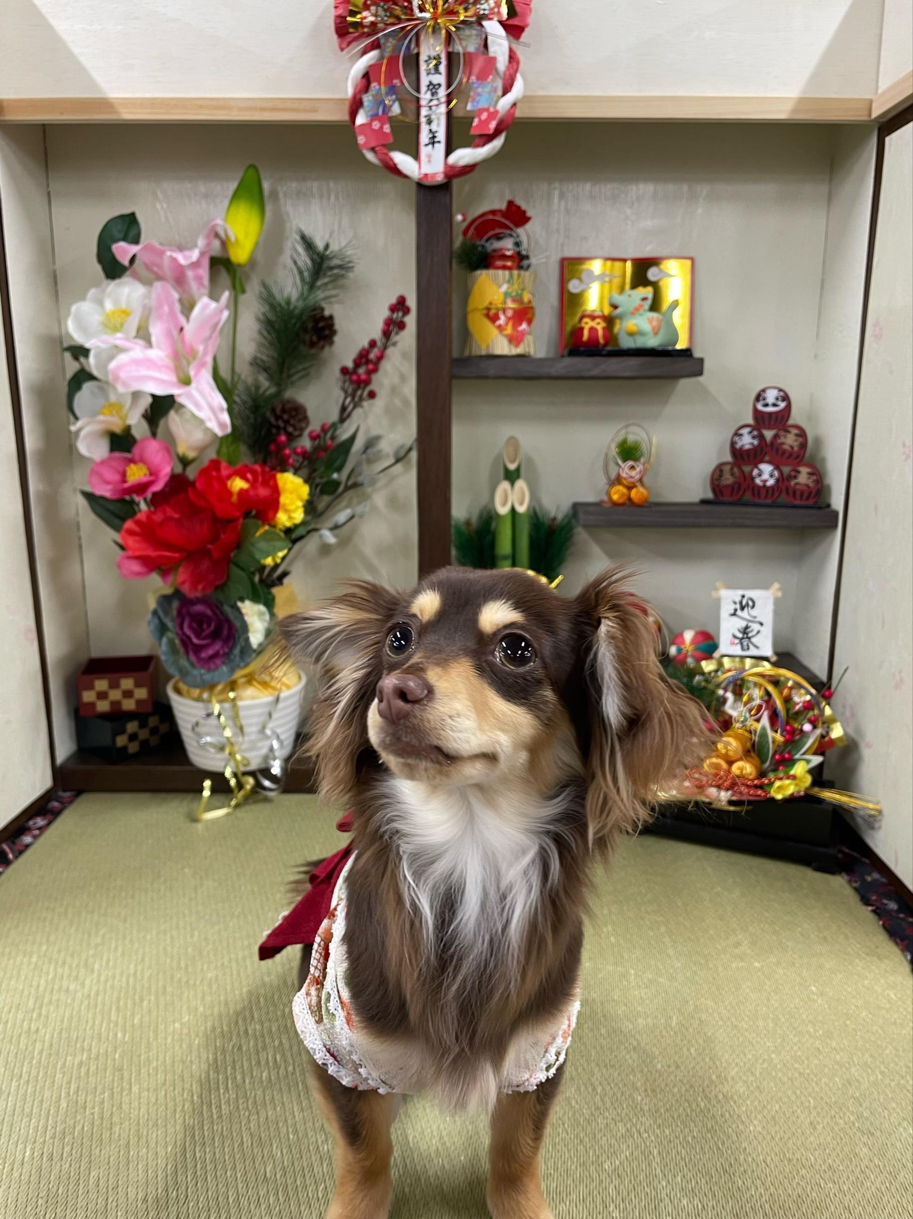 写真はお正月仕様におめかしした我が家のアイドルです⍢⃝