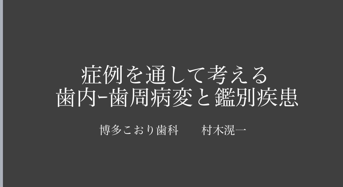 先日、院内で定例ミーティングが行われたのですが、そこで僕が症例発表を行う機会がありました!テーマは歯内-歯周病変に関してです。