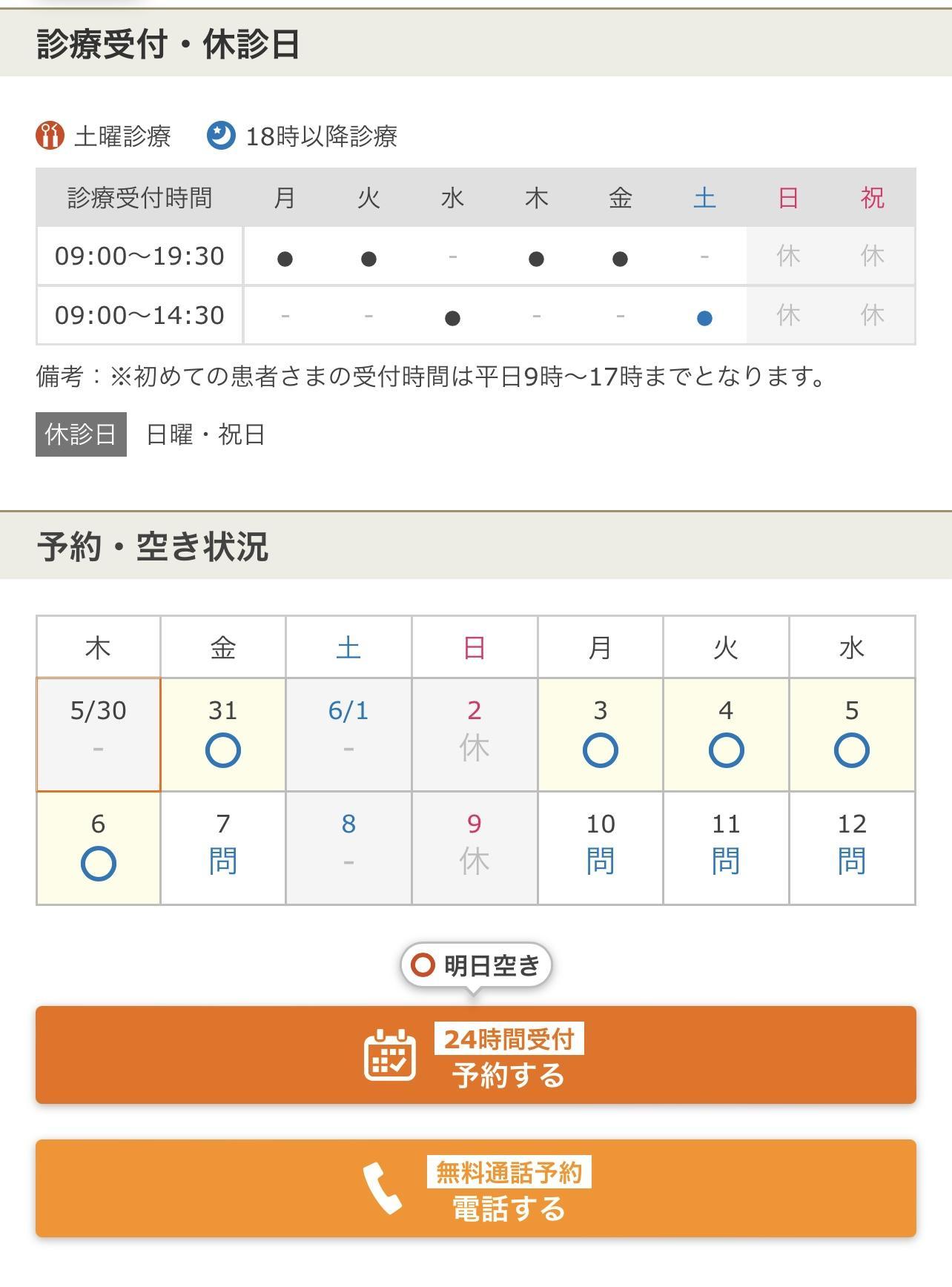 予約と書いてある表記がありますのでそちらを開いて頂き空きがありますと○の表示が出ていますので