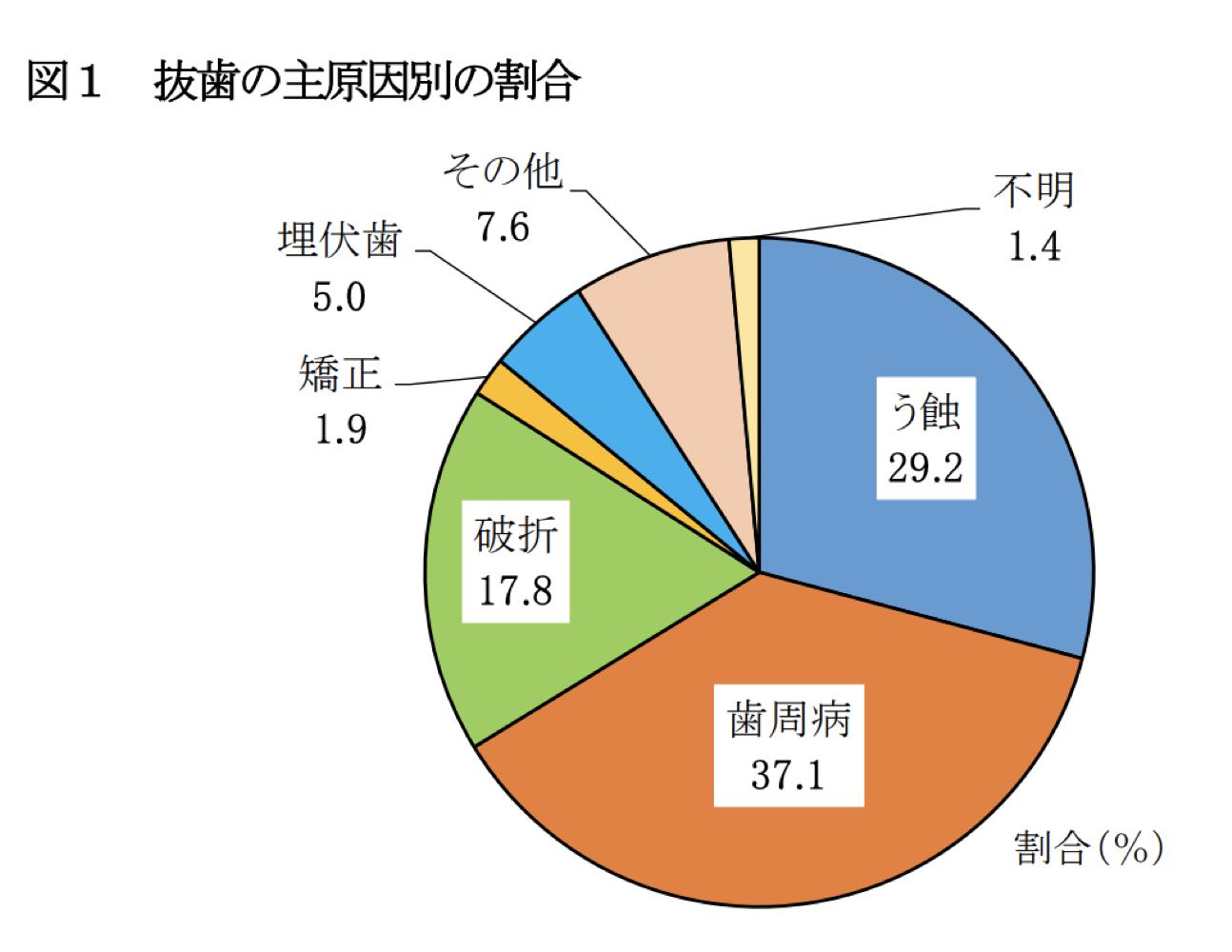 突然ですが、日本人の抜歯の原因で多いのは何でしょう。もしかしたら聞いたことがある方も多いかもしれませんが、『歯周病』です。2018年の永久歯の抜歯原因調査報告書によると、『う蝕(むし歯)』よりも多いんです。喫煙者の方ですと、その割合はさらに大きくなります。