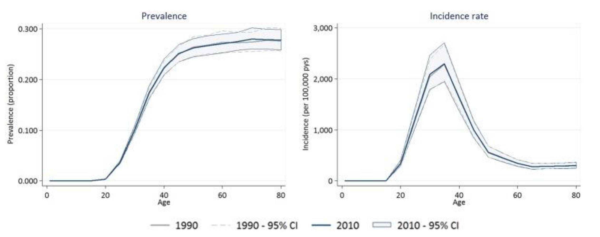 また、世界の重度歯周炎有病率についてですが、40歳以上の25%が重度歯周炎で、重度歯周炎の発症ピークは30代後半というデータが出ています。