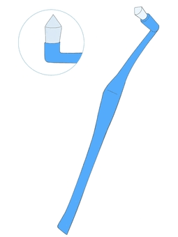 ヘッドの先端に毛束が1つだけ配置された小さな歯ブラシのことで、通常の歯ブラシでは磨きにくい歯の隙間や歯と歯茎の境目、奥歯の後ろなどをピンポイントで磨くために使われます。