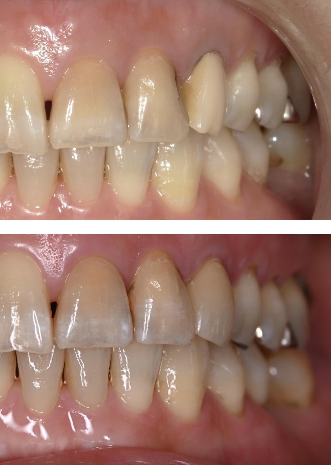 上顎左犬歯のジルコニアレイヤリングの治療前と治療後です。