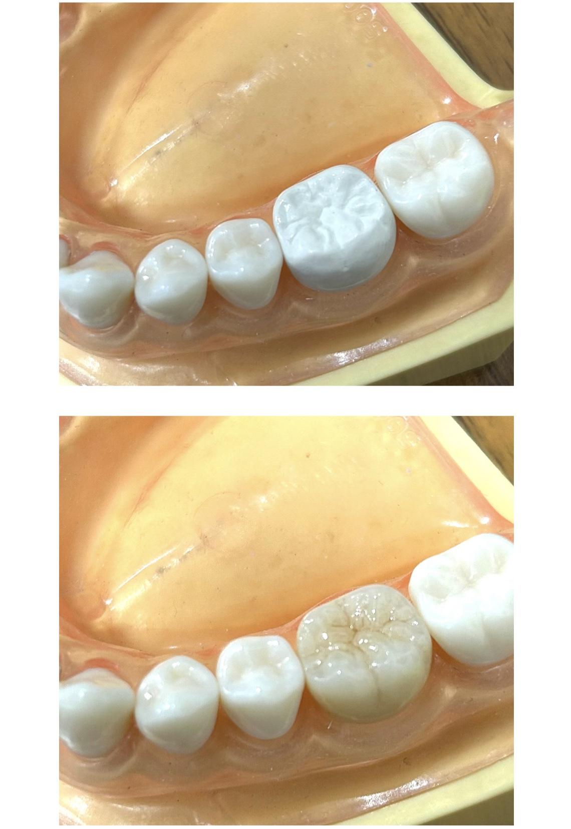 衝撃にも強く薄くても割れにくい特徴がありますので奥歯、特に割れやすい症例などに用いられます。
