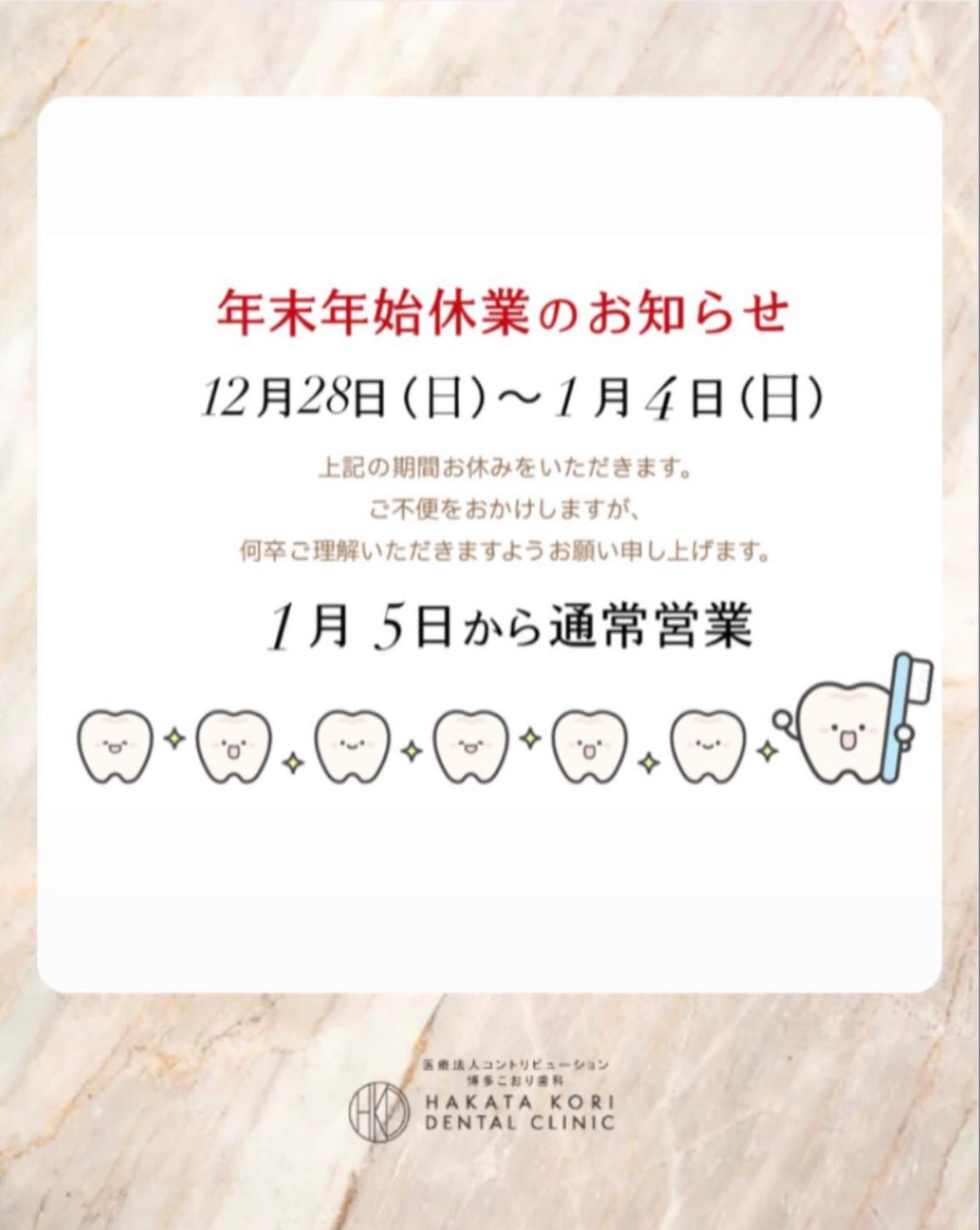 博多こおり歯科は12月28日(日)から1月4日(日)まで休診させていただきます🙇♀️